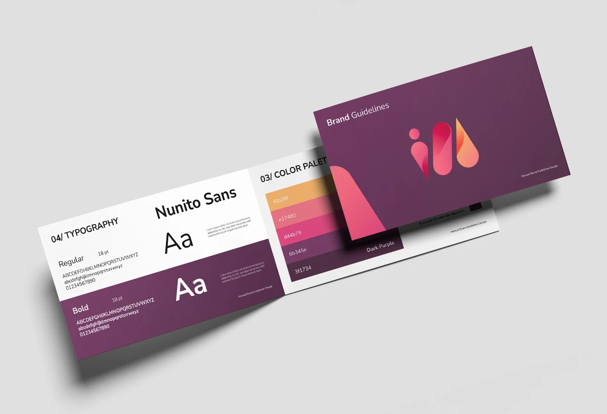 I create practical branding guidelines that are easy to follow and simple to apply. These guides typically include logo usage, colour palettes, typography, and examples of how your branding should appear across different materials.
